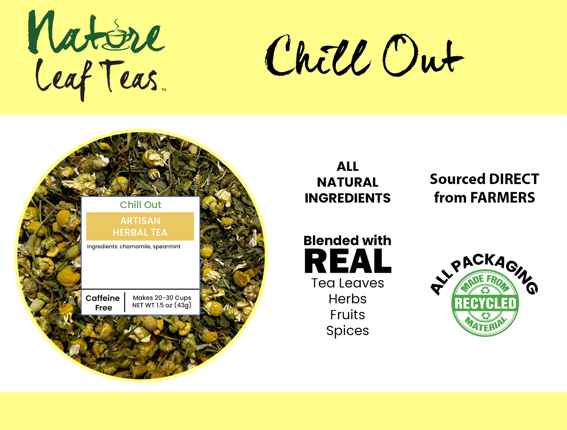 Relájate con la increíble mezcla de té de hierbas de manzanilla y menta. Nuestra mezcla personalizada consta de auténticas flores de manzanilla y hojas de menta.